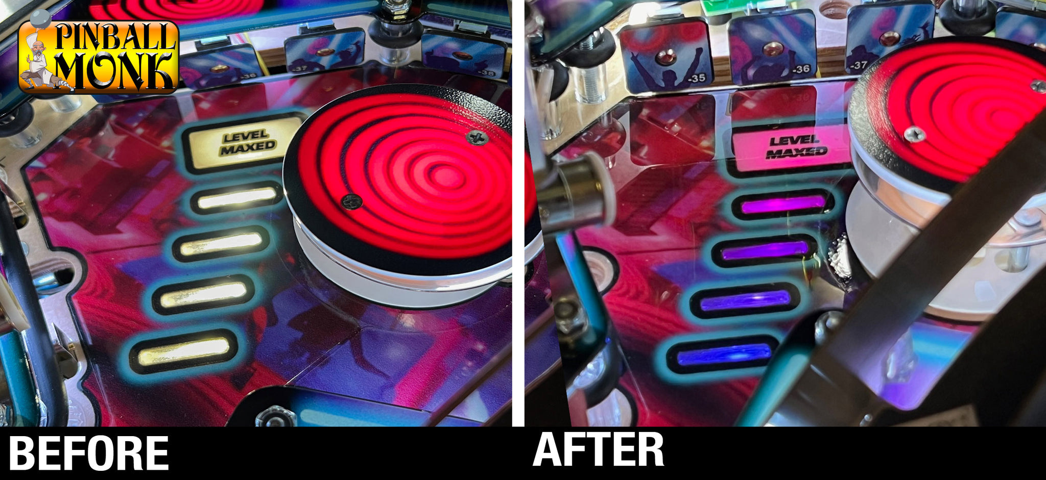 This bracket takes the boring white meter in the dance club area and changes it to a gradient progression from dark blue to cherry red, to match the color scheme of the dance club area. Installation is about 10 minutes.