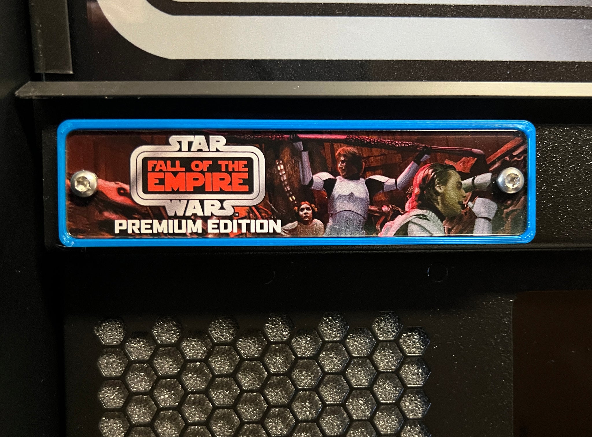 After the machine is unpacked and I have attempted to tame the silverball for a while, I begin noticing areas that would benefit from improvements I am able to make. Light inserts, fans to quiet noise, and figurines to improve aesthetics and hide ugly screws. One thing I have noticed that is always is too plain for my taste is the badges on the different models of machines. It is unadorned and plain, and doesn’t really stand out from the black base of the speaker and screen enclosure. It reminds me of the proverb, “There are no incurable diseases, only incurable people.”