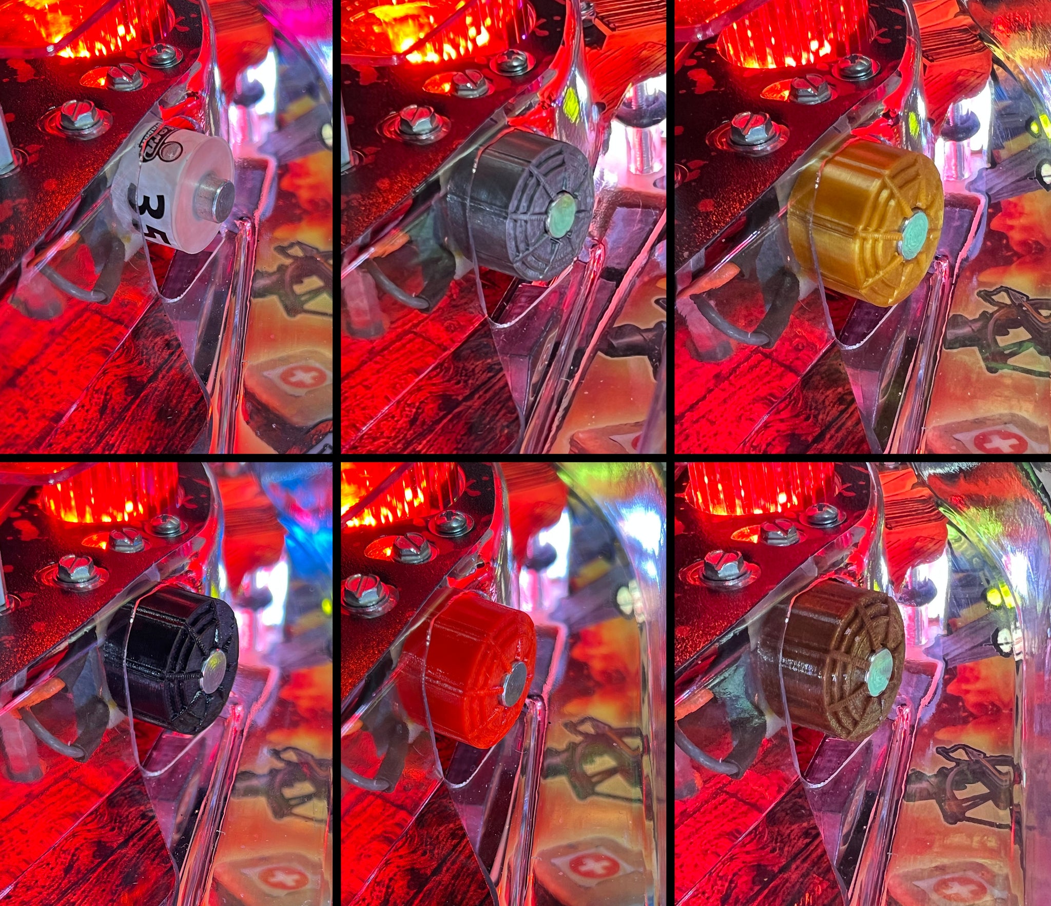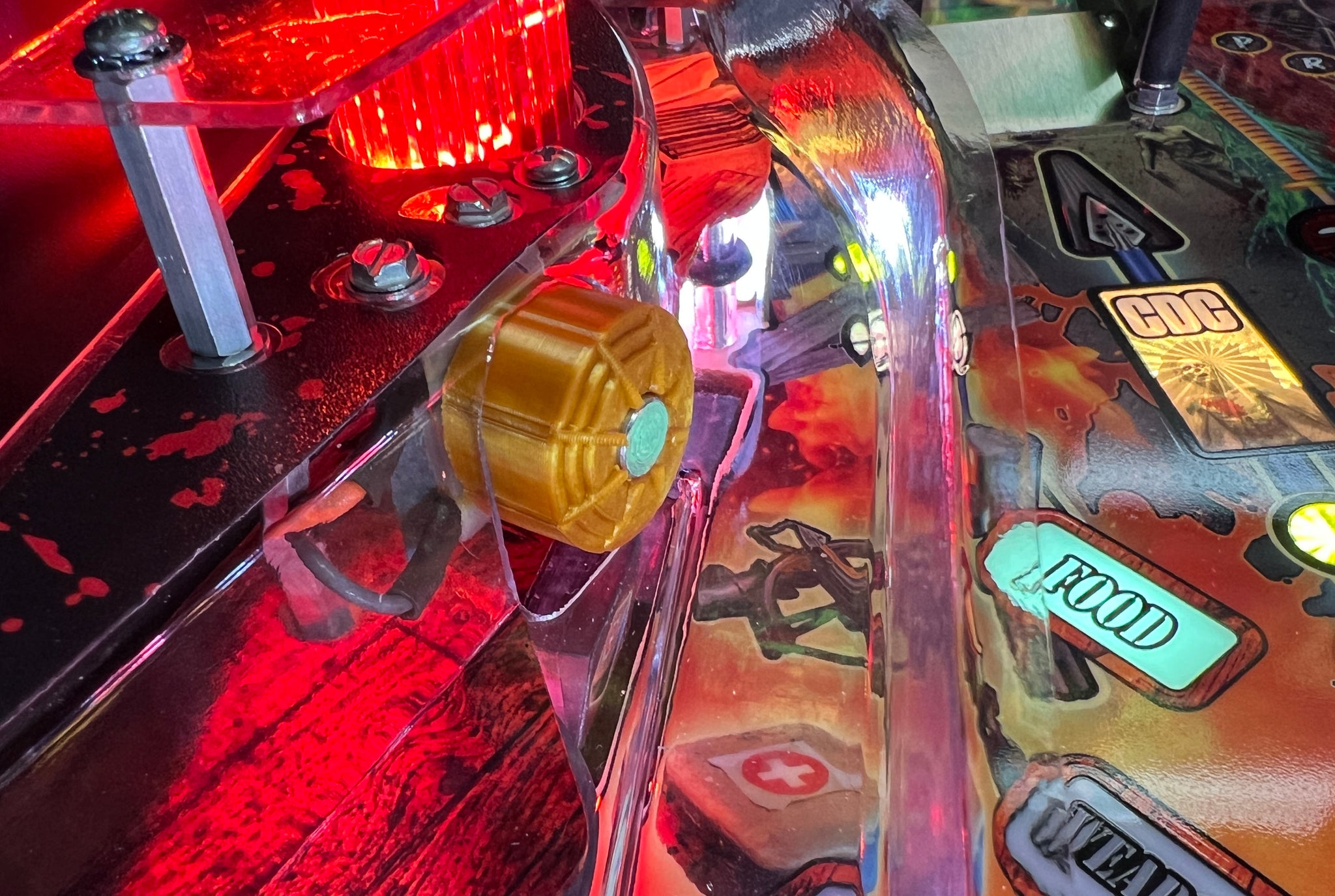 This is a cover for the naked coil that diverts the ball onto the crossbow lane when the feature is qualified. There are five color options, Gray, Gold, Black, Red, and Brown. The cover slides onto the coil and is pressure-fit with the ramp hole sides. It may be necessary to loosen the two screws on top holding the coil bracket to slide the cover on and then re-tighten and align the bracket once the cover is on.